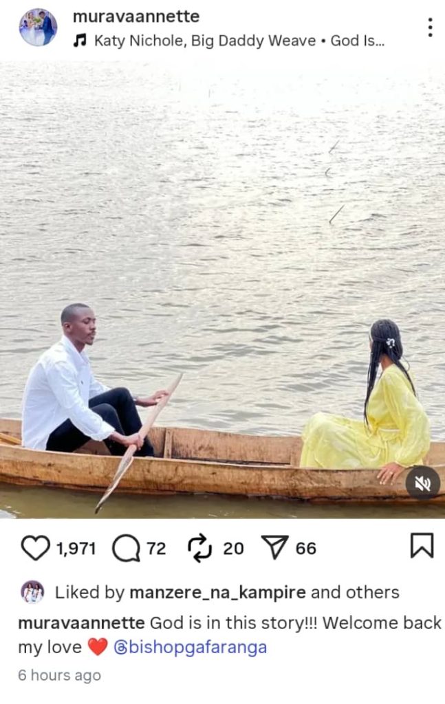 Ku mbuga nkoranyambaga yanditse ati: “Iyi nkuru irimo Imana! Ikaze nanone rukundo rwanjye Bishop Gafaranga.”