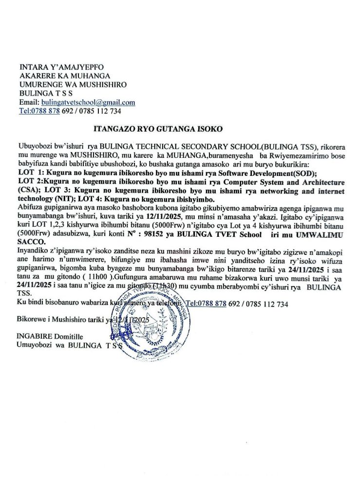 BULINGA TSS: Isoko ryo kugura no kugemura ibikoresho byo mu ishami rya Software Development, irya Computer System and Architecture, irya networking and internet n’isoko ryo kugemura ibishyimbo Ugushyingo 12, 2025 Hashize amasaha 9 Imvaho Nshya Ugushyingo 12, 2025 Hashize amasaha 9 Imvaho Nshya Ugushyingo 12, 2025 Hashize amasaha 9