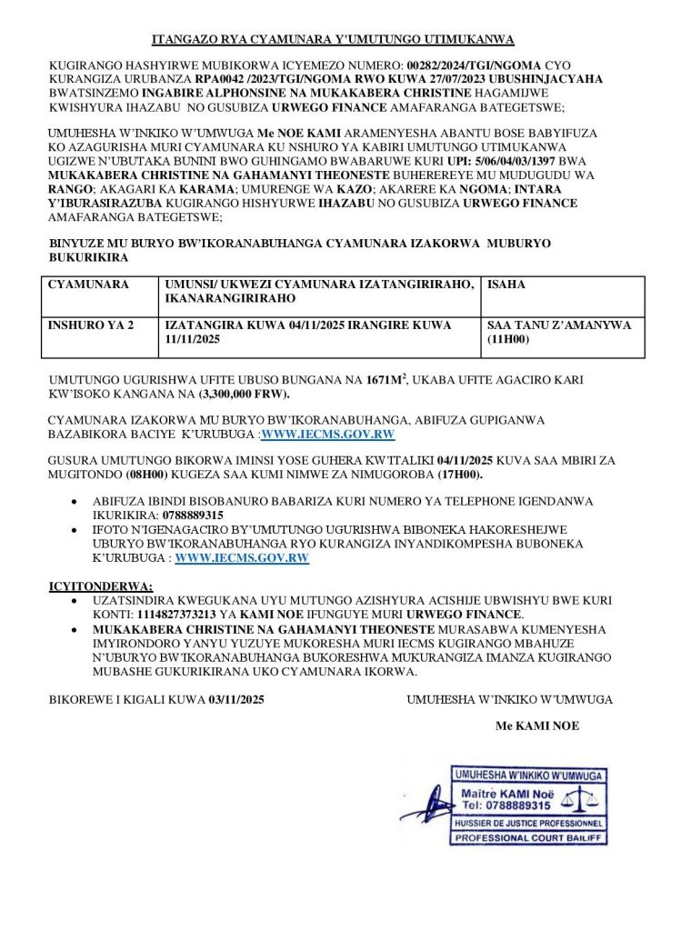 Cyamunara y’ubutaka bunini bwo guhingamo bwabaruwe kuri UPI 5/06/04/03/1397 buherereye i Kazo mu Karere ka Ngoma Ugushyingo 3, 2025 Hashize amasaha 9 Imvaho Nshya Ugushyingo 3, 2025 Hashize amasaha 9 Imvaho Nshya Ugushyingo 3, 2025 Hashize amasaha 9