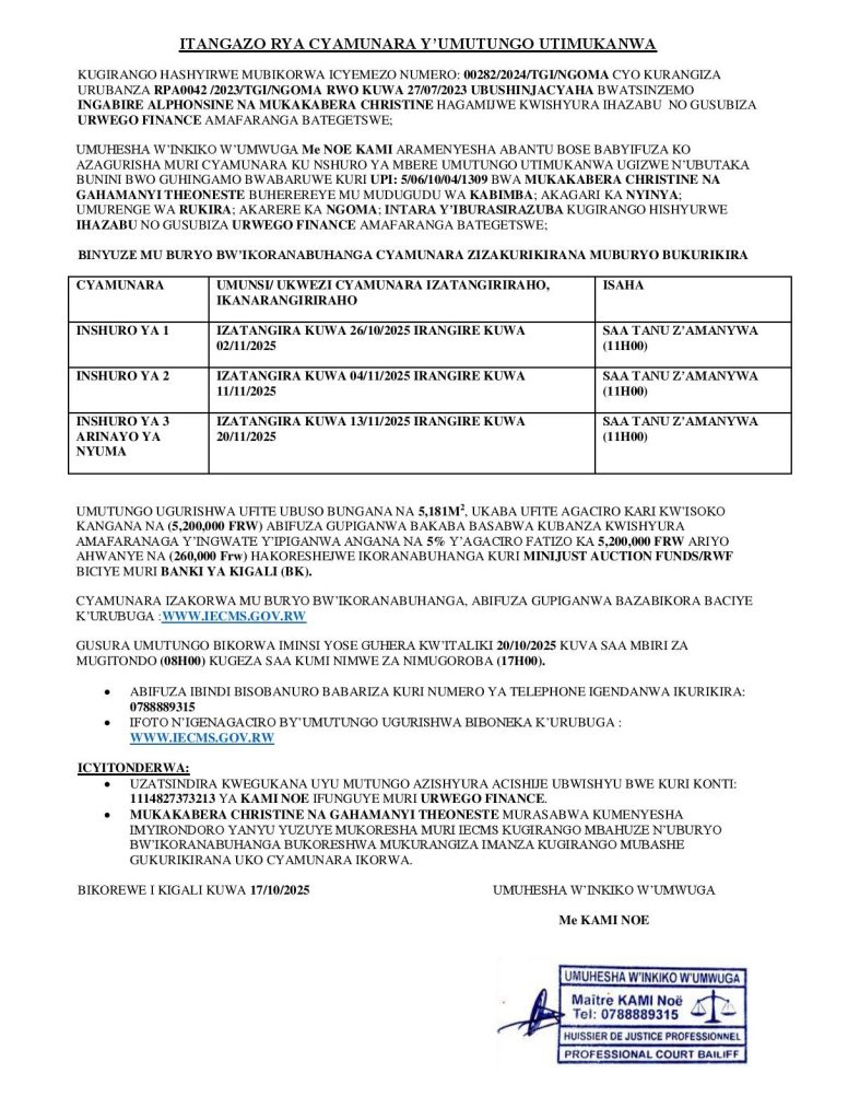 Cyamunara y’ubutaka bunini bwo guhingamo bwabaruwe kuri UPI 5/06/10/04/1309 buherereye i Rukira mu Karere ka Ngoma Ukwakira 17, 2025 Hashize iminsi 4 Imvaho Nshya Ukwakira 17, 2025 Hashize iminsi 4 Imvaho Nshya Ukwakira 17, 2025 Hashize iminsi 4