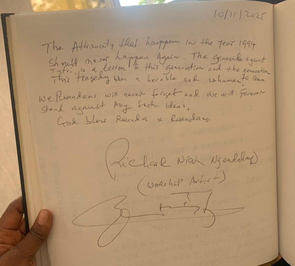 Ubutumwa bwa Richard Nick Ngendahayo ubwo yasuraga Urwibutso rwa Kigali
