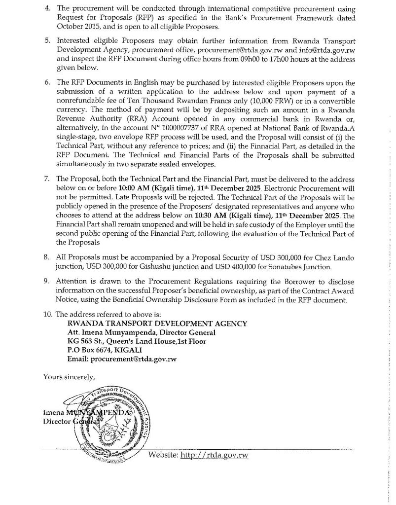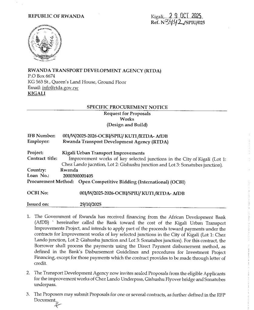Rwanda Transport Development Agency (RTDA: Specification Procurement notice for Design and Build of Key selected junction in the City of Kigali under KUTI Project Ukwakira 29, 2025 Hashize amasaha 4 Imvaho Nshya Ukwakira 29, 2025 Hashize amasaha 4 Imvaho Nshya Ukwakira 29, 2025 Hashize amasaha 4