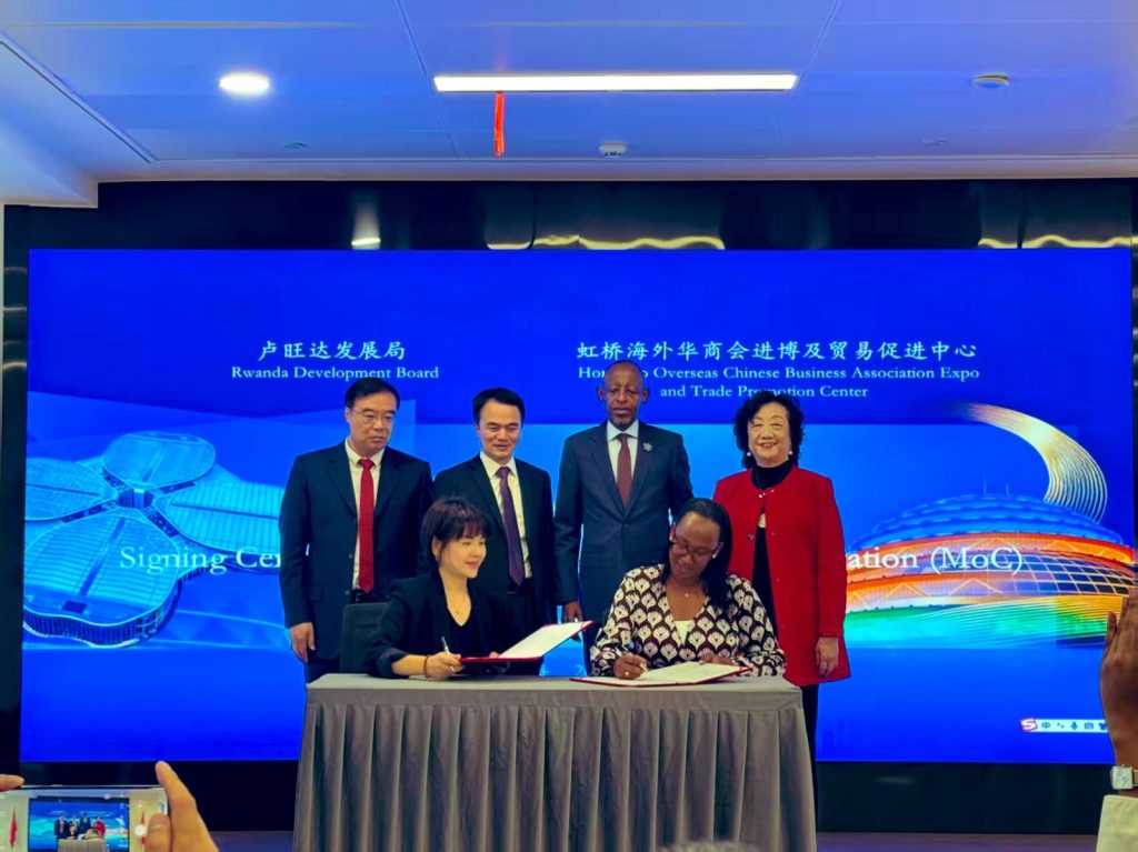 Ni amasezerano yashyizweho umunono n’abahagarariye Urwego rw’Igihugu rw’Iterambere (RDB) n’Ikigo giteza imbere ishoramari ry’Abashinwa baba mu mahanga, (Hongqiao Overseas Chinese Business Association Expo and Trade Promotion Center).