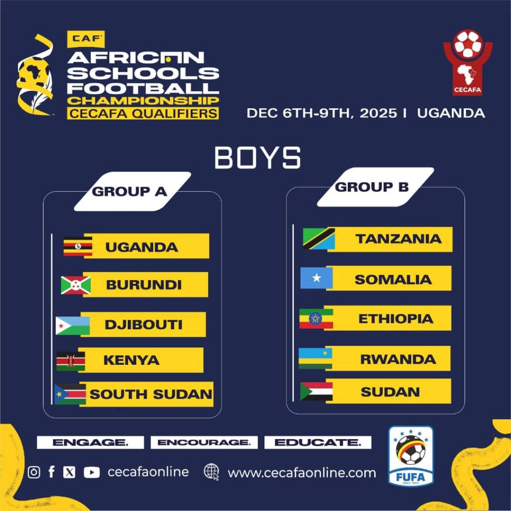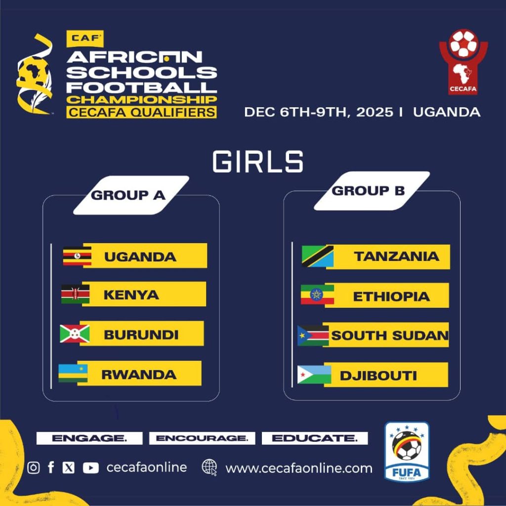 Ikipe y’u Rwanda y’abahungu yisanze mu itsinda B naho iy’abakobwa yisanga mu itsinda A mu mikino ya “U15 CAF African Schools Football Championship CECAFA Qualifiers” izabera muri Uganda tariki 6-9 Ukuboza 2025.
