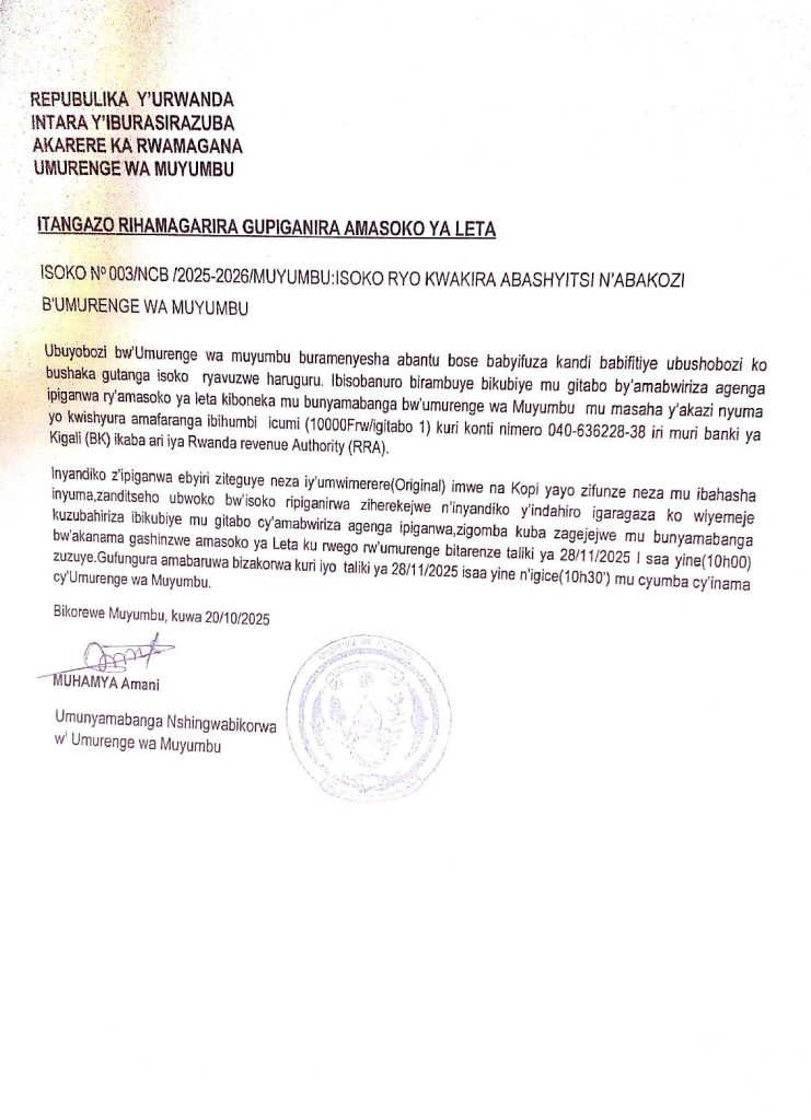 UMURENGE WA MUYUMBU: Isoko ryo kwakira abashyitsi n’abakozi b’umurenge Ukwakira 23, 2025 Hashize amasaha 5 Imvaho Nshya Ukwakira 23, 2025 Hashize amasaha 5 Imvaho Nshya Ukwakira 23, 2025 Hashize amasaha 5